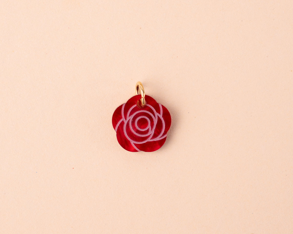 Mother of pearl acrylic glass with engraved illustrated details. Original 'a cute color' design handmade in Hamburg.
