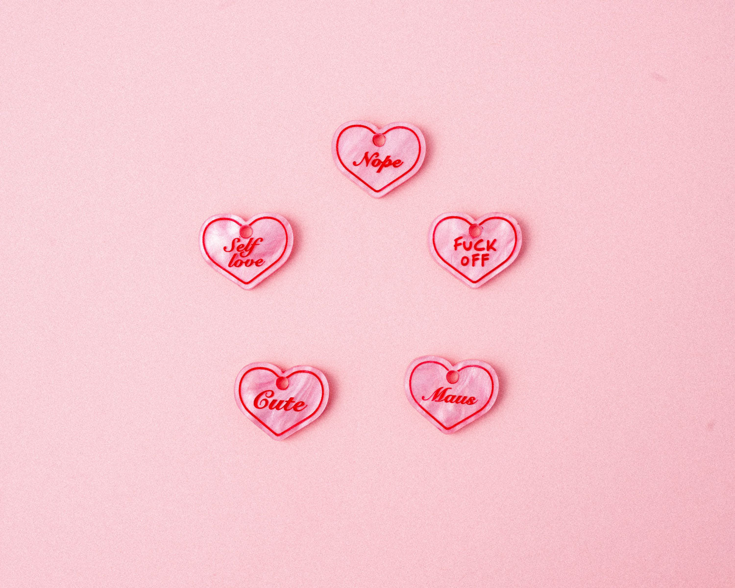 Manchmal weiß man ziemlich genau, was man sagen will. Die babyblauen Candy Hearts übernehmen das für dich – mal soft, mal eindeutig, mal absoluter Cut. Kleine Messages, die man nicht lange formulieren muss. Einfach je nach Mood tragen.