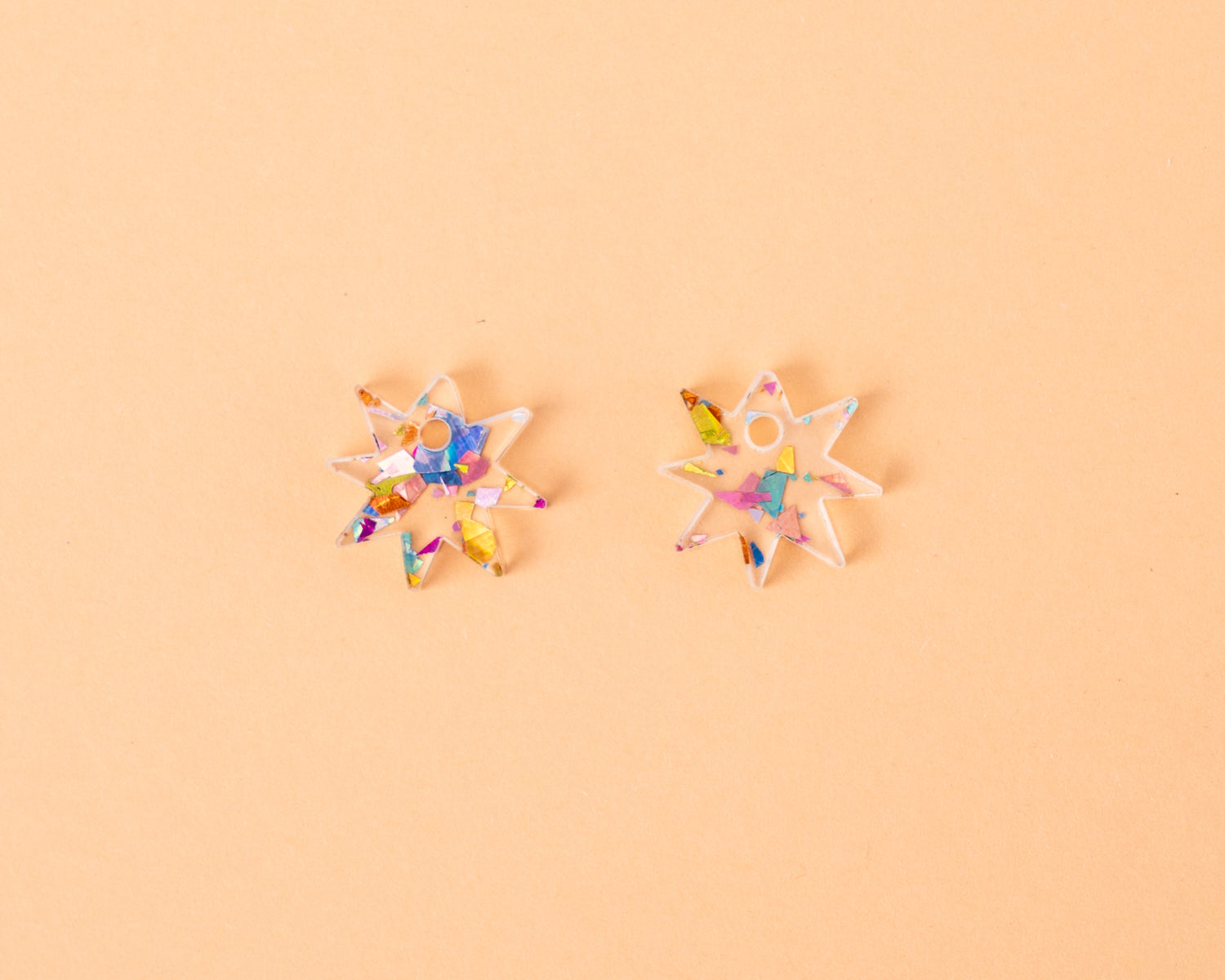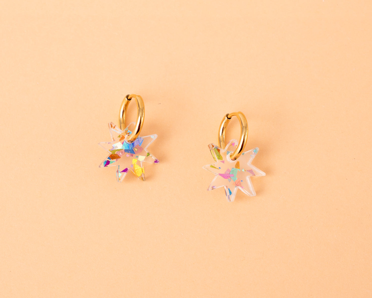 Dezente kleine Sternen Anhänger aus feierlichem Glitter Acryl und Hoops aus vergoldetem Edelstahl. Dezent und trotzdem glitzernd. Jeder Anhänger ist einzigartig, wir achten aber natürlich darauf, dass deine zwei gut zusammenpassen!