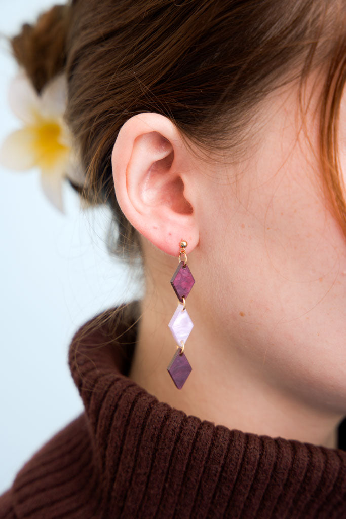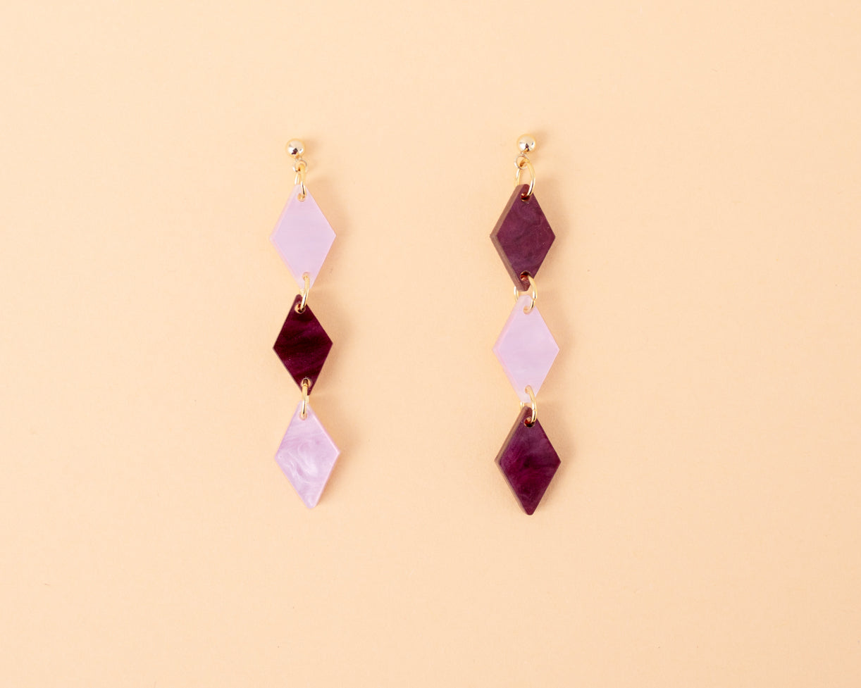 Colorblock Mismatch Rauten Trio Ohrringe Lila