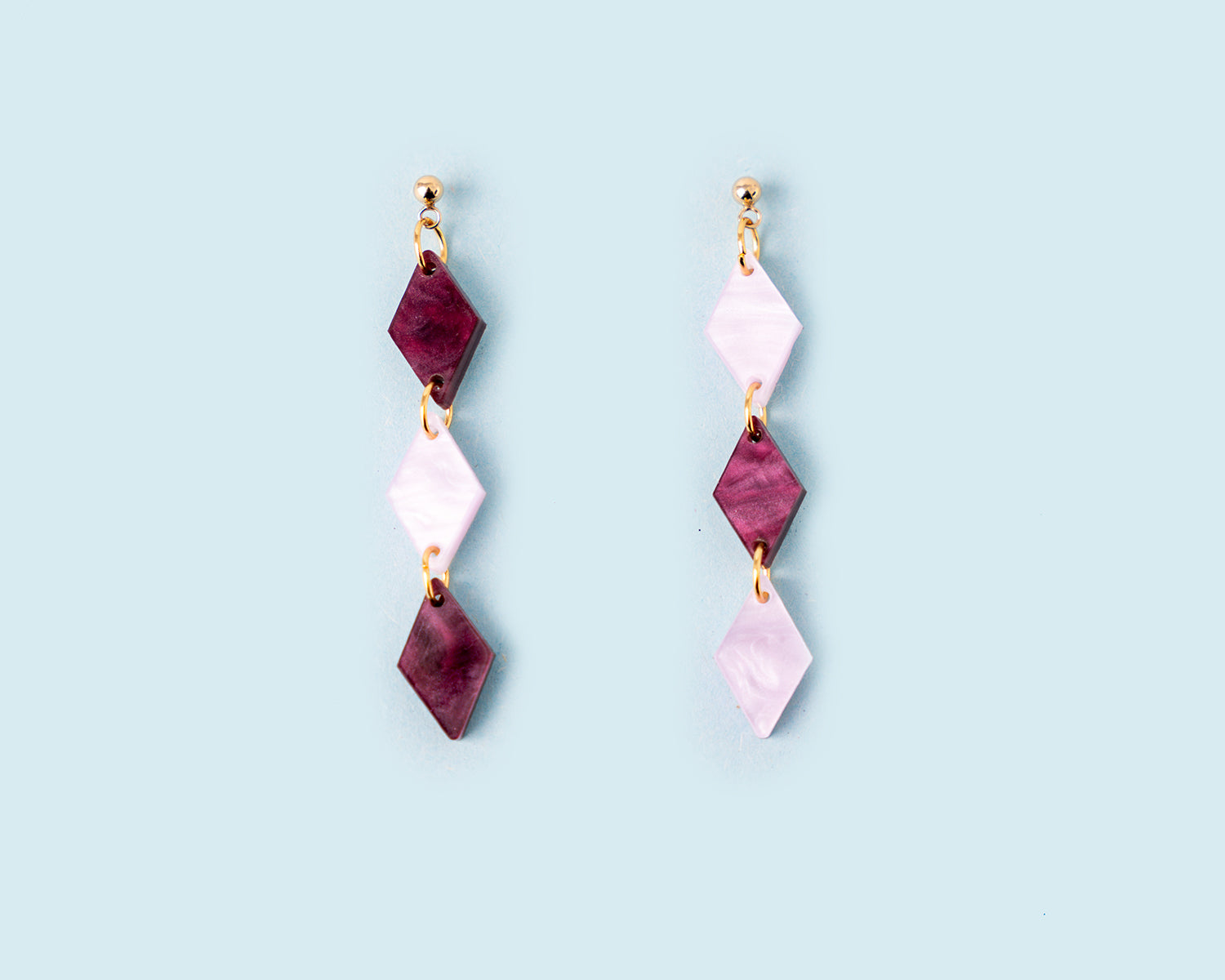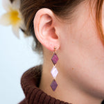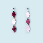 Geometrische Ohrhänger aus Perlmutt-Acrylglas in drei schönen Farben.