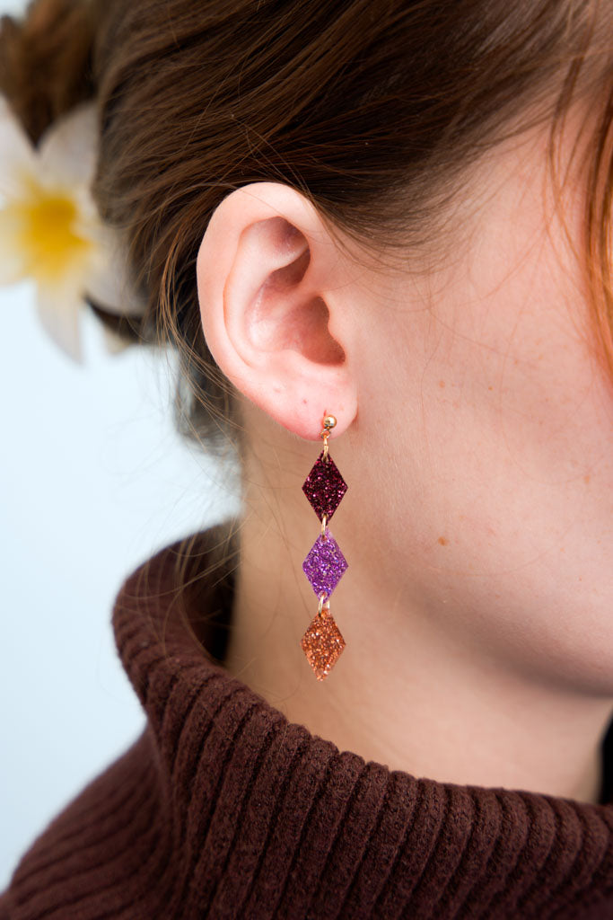 Colorblock Rauten Trio Ohrringe Purple Glitter