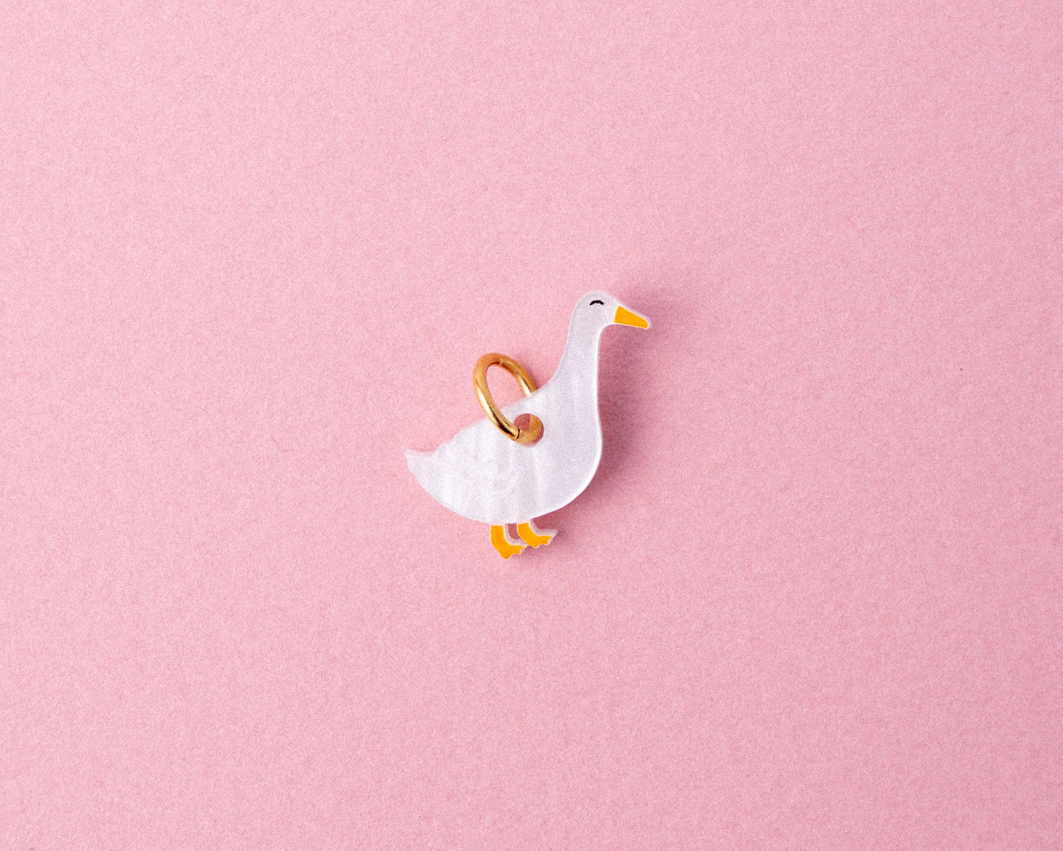 Diese kleine zufriedene Gans besteht aus hochwertigem, weißem Perlmutt-Acryl mit einem sanft schimmernden Finish. Jedes Detail von Schnabel bis Fuß wird von Hand bemalt – dadurch ist jedes Gänslein ein kleines Unikat.