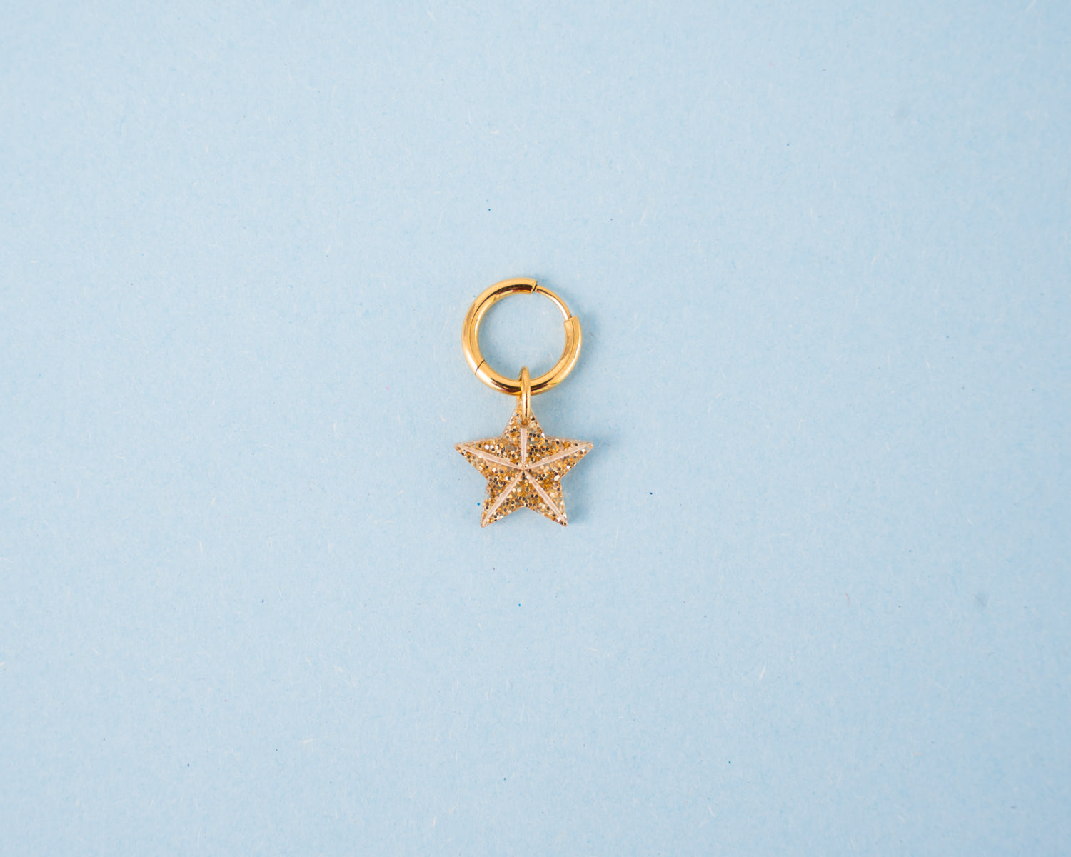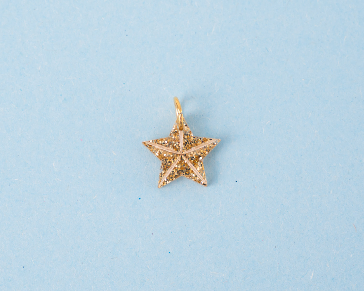 Ein kleiner glitzernder Stern mit zarter Gravur.