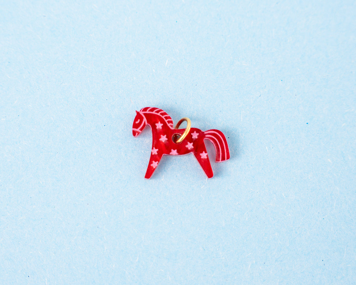 Unser Pferdchen besteht aus tief rotem Perlmutt-Acryl, das im Licht warm schimmert. Die kleinen rosa Sterne werden von Hand bemalt und machen jedes Stück zu einem kleinen Unikat. Ein kleines Pferdchen, das sofort gute Laune macht.