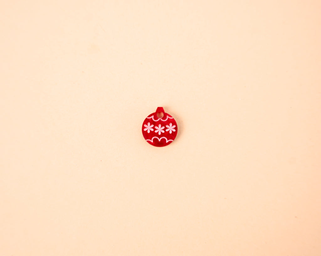 Süße kleine Weihnachtsbaumkugel aus schimmerndem, rotem Acryl mit graviertem Muster.