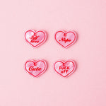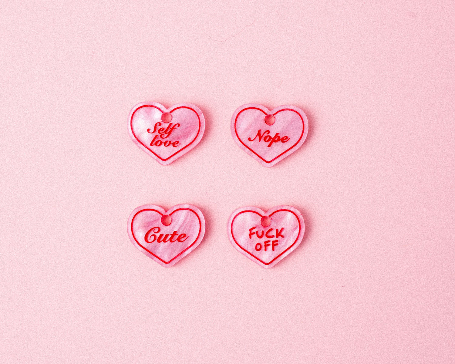 Manchmal weiß man ziemlich genau, was man sagen will. Die rosafarbenen Candy Hearts übernehmen das für dich – mal soft, mal eindeutig, mal absoluter Cut. Kleine Messages, die man nicht lange formulieren muss. Einfach je nach Mood tragen.
