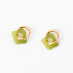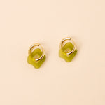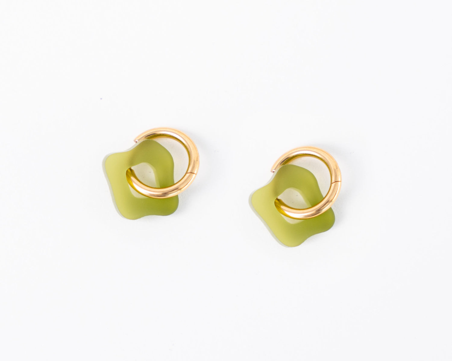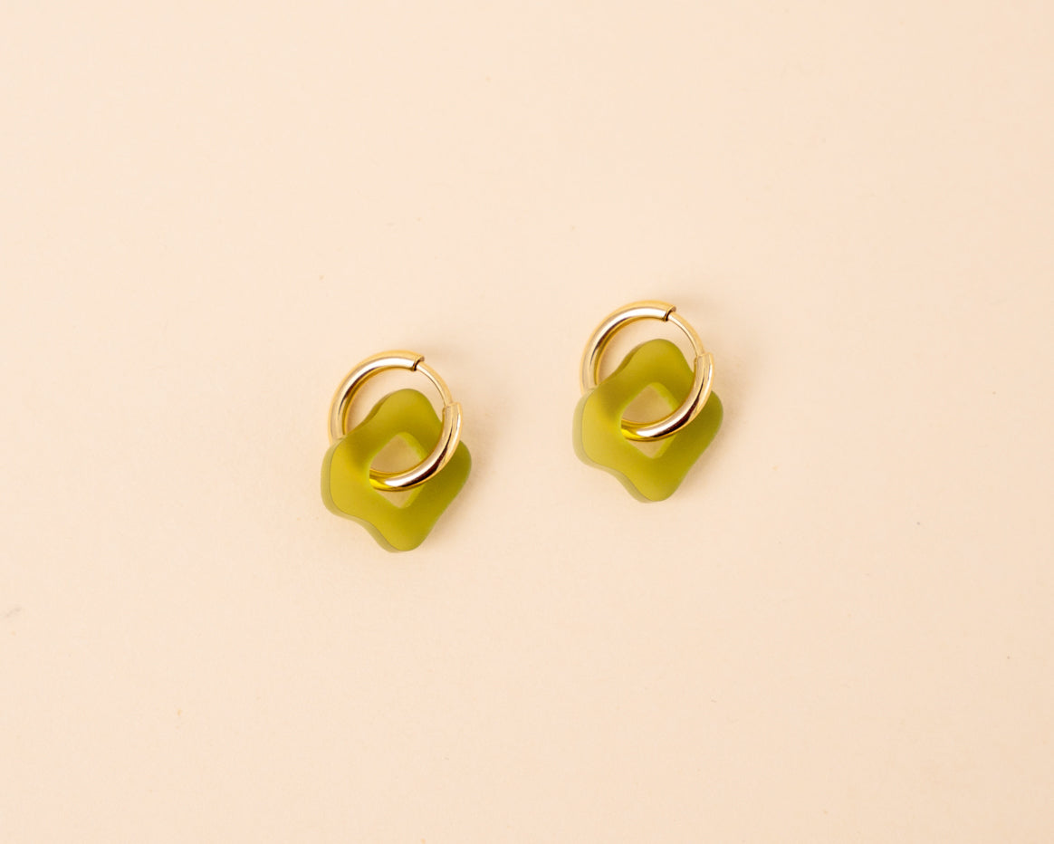 Set aus zwei unregelmäßig geformten Anhängern in Matchagrün, gefertigt aus mattem, leicht transparentem Acryl, die sich super untereinander kombinieren lassen.