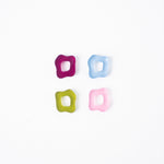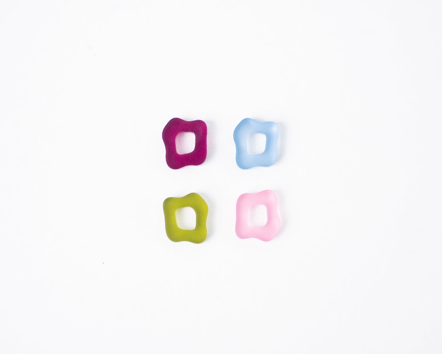 Set aus zwei unregelmäßig geformten Anhängern in Matchagrün, gefertigt aus mattem, leicht transparentem Acryl, die sich super untereinander kombinieren lassen.